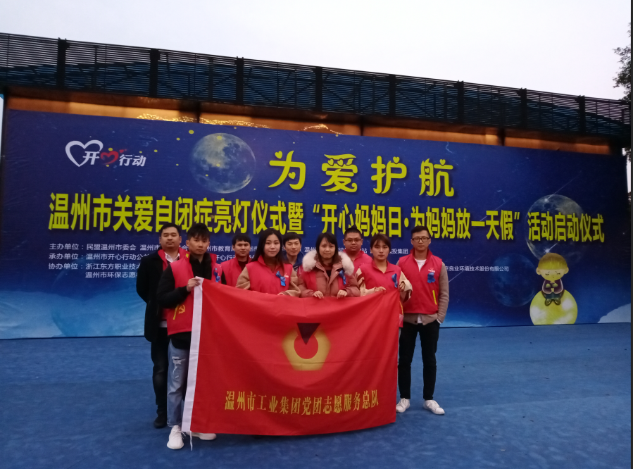 3月31日下午,“为爱护航”——温州市关爱自闭症亮灯仪式暨“开心妈妈·为妈妈放一天假”活动启动仪式在瓯江路灯光观景台举行,作为协办方之一,集团团委组织志愿者参加启动仪式。