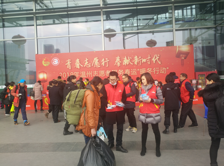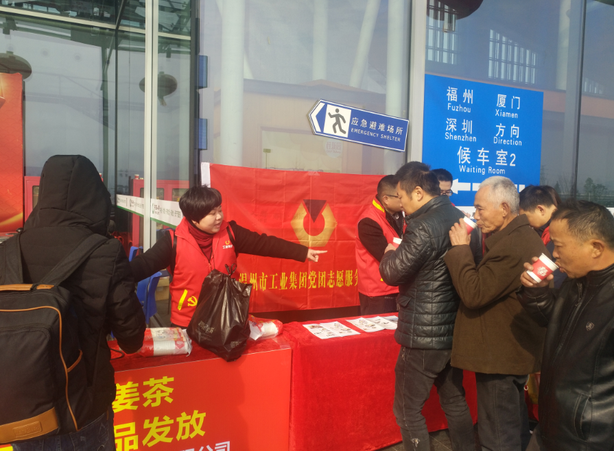 1月21日上午,集团团委积极响应团市委号召,联合医药站公司、浙瓯公司在温州动车南站助力2019年温州志愿者服务春运“暖冬行动”,为过往旅客送上驱寒姜茶及日常药品。