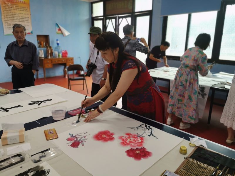 交流笔会期间,书画家积极创作,由福鼎市老年书画协会会长陈丹复带领的二十余位书画家现场挥毫泼墨,创作书画作品三十多件。中国美术家协会会员、著名画家马树霞虽年事已高,全身心投入,创作的山水画《神山情石》,受到大家一致赞扬。