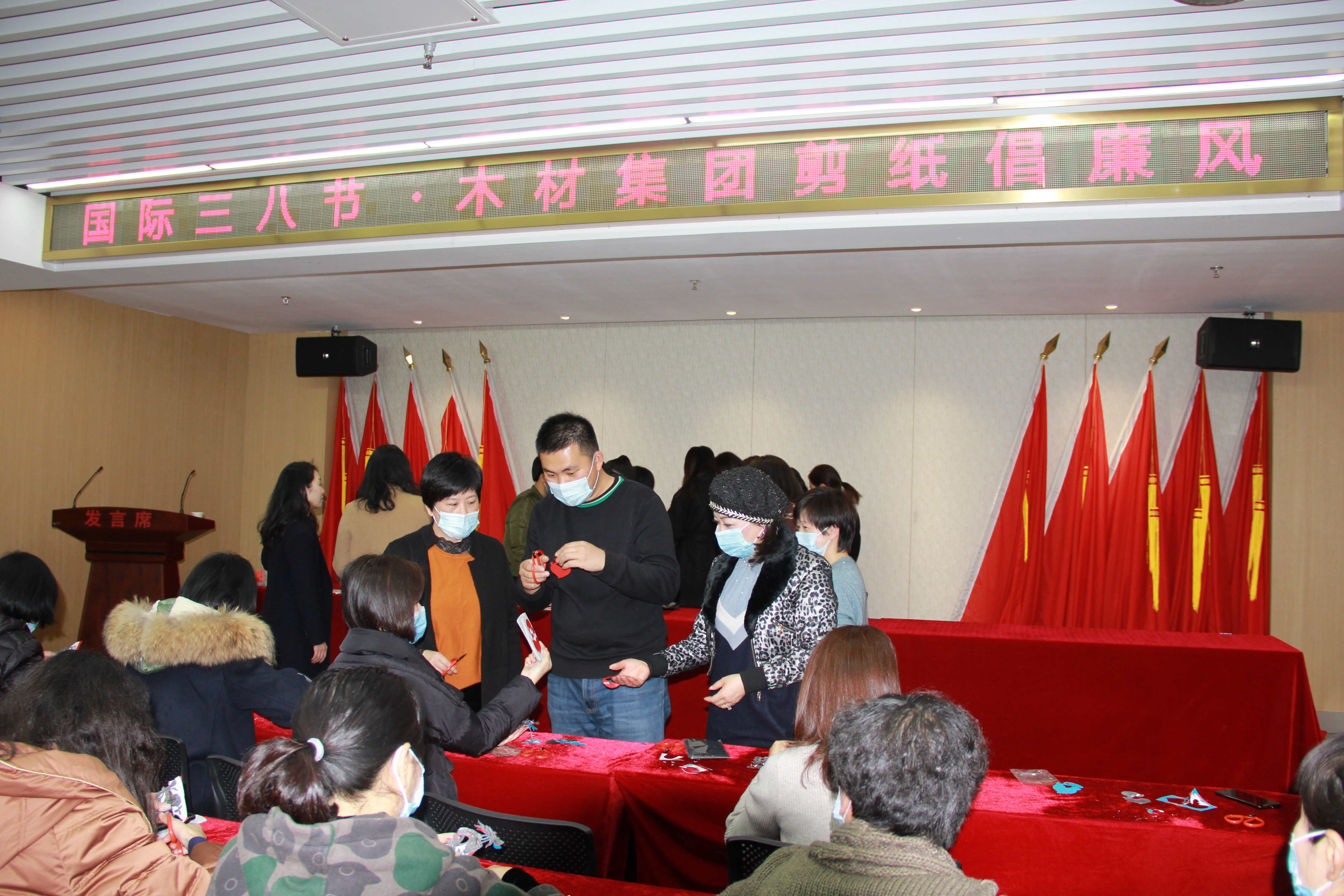 近日,木材集团与市总工会联合开展“三八”妇女节“一方剪纸话廉洁”剪纸活动,共有60余名女职工参加。