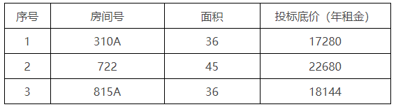 四、投标底价:详见附表(租金按半年交付,先付后用,出租方提供租金发票,投标押金不低于年租金的20%)。