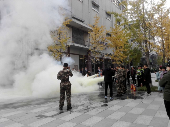 12月5日下午,面粉公司特邀鹿城公安消防分局江滨中队官兵,与米房厂及商家联合举行消防安全应急预案演练活动。
