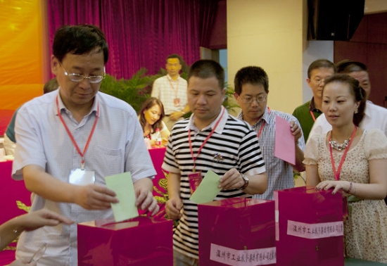 7月28日下午,市工业集团第一届一次职工代表大会暨工会会员代表大会在市工人文化宫胜利召开,大会选举产生了第一届工会委员会、经审委员会、女职工委员会。这是集团公司全体职工和工会会员政治生活中的一件大事,让我们用镜头记录下这一庄严的时刻。(温冶 陈琳 摄)