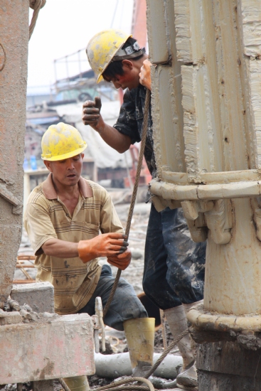 离开车间,走入木材集团重点工程的“滨江广场”施工地点,水泥搅拌的声音、打桩机的声音、挖掘机的声音混成了一首壮观的工地交响曲,配上那沾满泥土的工人们“舞动”的身影,如此富有特色的画面多么刺激我们的镜头,只是因为施工单位为我们的安全考虑,我们只能短短停留了一会儿。时间对我们来说真流失的太快了,于是我们加快步伐来到中纤板厂区,大吊车正将一个机器吊入货车上,这样的场景对摄友们来说是可遇不可求的,一个个镜头对着缓缓上升的机器,拼命地去按快门,有一种生怕眨一下眼睛都会错过什么的感觉。几位老工人看到我们在拍摄,感慨的说:“你们来的太迟了,中中纤板生产线已开拆了,原来很壮观的,能拍下来了,以后看看就好了!”爱厂之心溢于言表。当然木材公司还有很多代表性的建筑,如木材集团门口竖立着纪念抗战胜利遗迹的凉亭,还有土砖建的古烟囱等,都是我们的摄中之物。