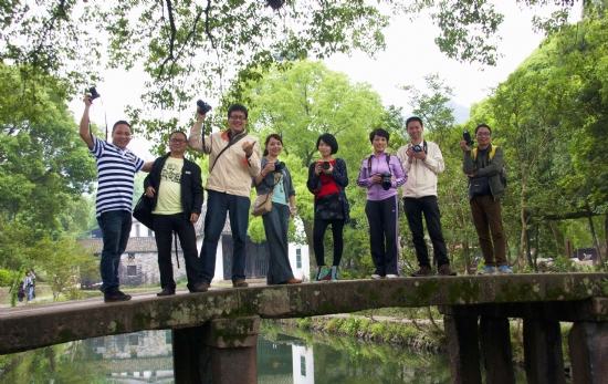 大家把镜头对着层层叠叠的田梯,还不忘互相交流哪个角度和位置去取景,用多少光圈等各种参数,如此寓教于乐的活动怎能错过!只因天公不作美,雨量渐渐增加了,为了保护摄影器材只能稍作暂停,去下一个目的地“丽水街”和“芙蓉古村”,这些古色古香的地方也是摄影的最佳选点。小河流水,石路长廊,水池古亭都逃不过我们的镜头,近物远景,甚至同一个景,由于每个人的角度不同,最后效果也不一样。