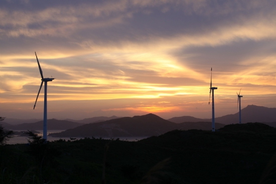 追过晚霞,当然不能错过日出,这两道时光是摄影爱好者必修之作,清晨4点20分天还没亮,各位会员们都已经集合了,风电站里的工作人员开着岛上唯一一辆还能开动的汽车,带我们去最佳观赏点,等待地平线的第一缕光。日出时云是自然的反光物体,它能传播太阳的红光,从而不断的使作品产生变化,这次却有几片乌云笼罩着曙光,不过也有它的美处。还有海面上的倒影,岛上的风力发电机,摇摆的芦苇,海上偶尔驶过的船只,都在任我们去组合画面。镜头一刻都不能松懈地对着慢慢上升的太阳,这是分秒必争的时刻,每一秒都在变化着。因为岛上的风太大,吹的人都站不稳,就很难架三角架现在只能靠手的平稳度了。天已经很亮了,大家再继续一路行驶,只听会长兴奋的叫着司机停车,眼前的景象让人叹为观止,空中的太阳光经过一片乌云过滤后照射到海面和岛上,海面折射出一片银白色,眼前的树、芦苇,和小岛都成了一个个影像,整个画面万分的有意境,可谓难得一见的奇观。此景对摄影者来说,如同是在给一个饥饿的人送上食物一样,拼命地将“食物”收纳到镜头里。过程虽是辛苦的,但看着照片是让人振奋的。