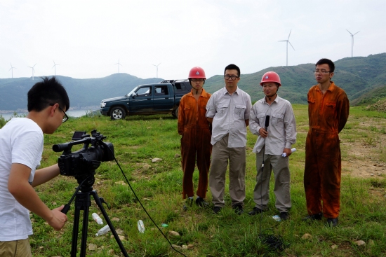 刘金丹实地考察了格林风力发电场工作现场,详细了解生产一线职工的生产与生活情况。并指导随行记者对参评温州市“五型班组”模范班的电场运行一值班组成员进行采访和微电影拍摄。