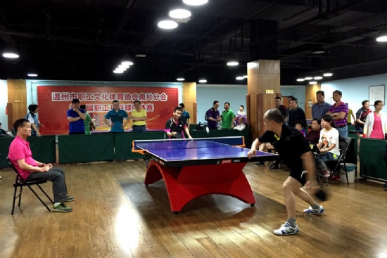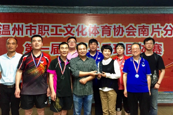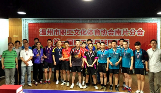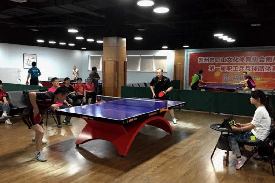 5月9日,由温州市工人文化宫和温州市职工文化体育协会主办,温州市职工文化体育协会南片分会承办的2015南片分会职工乒乓球团体赛在文化宫四楼乒乓球馆举行。此次比赛共有温州电信公司、温州移动公司、温州机场、温州大学、温州邮政局、工投集团、英博双鹿集团、交运集团、交投集团等9个会员单位,35名运动员参赛。