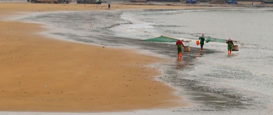 在北岐的紫菜生产基地、涵江海带场、三沙、东壁等摄影景点,渔船和海边嬉戏的孩童点缀画面,别有一番韵味。小皓的金沙滩上,习习海风,带着浓浓的鱼腥味,铺面而来。我们正好赶上一批摄影队在柔沙铺垫而成的海岸线上来回行走,我们也“厚着脸皮”趁机拍了这一难得的场景,就这样行行摄摄直到没有一丝光亮可以让我们捕抓美景。
