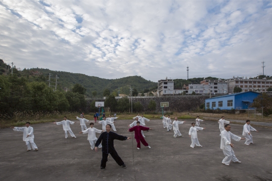 在红叶似火、湖水似镜云雾升腾的湖畔,太极拳会员们凝神静气、舒展筋骨、吐故纳新,一招一式似春蚕吐丝绵绵不断,又如长江之水滔滔不绝,于行云流水间展现着纯粹的中国文化。