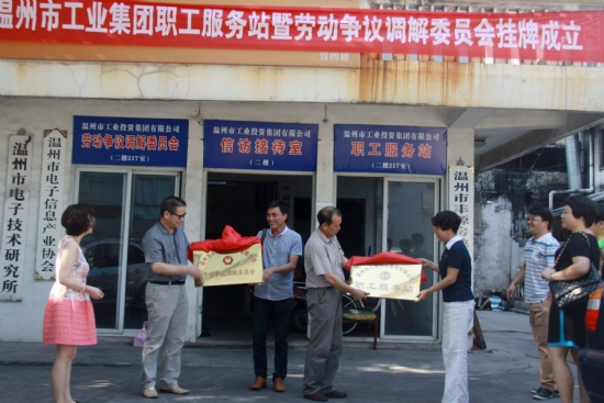 授牌仪式由集团公司工会主席凌虹主持,工业集团组建以来,所属企业多,困难职工多、劳动模范多,历史遗留问题和信访维稳压力重,集团公司工会决定率先建立职工服务站暨劳动争议调解委员会,按照“十有”标准配备人员、办公设备,办公室设在机械大厦附属楼217室与集团维稳信访室共同接待职工来访。