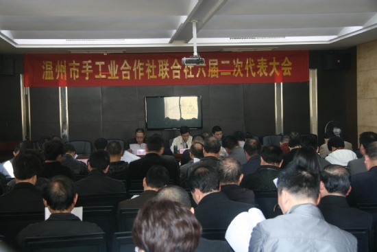 3月21日,温州市手工业合作社联合社第六届代表大会第二次会议在市工业集团召开,市手工业联社主任周新波作工作报告,会议由市手工业联社副主任张志东主持。来自各县(市、区)联社90多名会员代表参加会议。