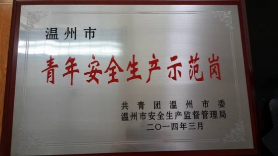 5月7日,2014年全市“号手岗队”联创共建暨城市共青团工作会议召开。共青团温州市委、温州市安全生产监督管理局授予温州新能源控股有限公司霞关风电运行班组温州市“青年安全生产示范岗”荣誉称号。