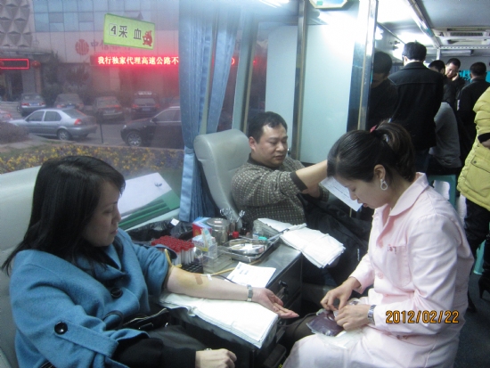 根据《关于开展无偿献血活动的通知》(温工集[2012]15号)文件精神及相关要求,2012年2月22日上午,集团公司办公室、集团公司工会组织本级员工共18人到人民路街心公园献血车上进行无偿献血活动。填表、体检、验血、献血、领取献血证、领取纪念品,献血活动有条不紊的进行,每个人都因能帮助别人而洋溢着灿烂的笑容。这次无偿献血活动充分体现了我们工投集团员工的无私奉献的精神和热心助人的高尚品质。