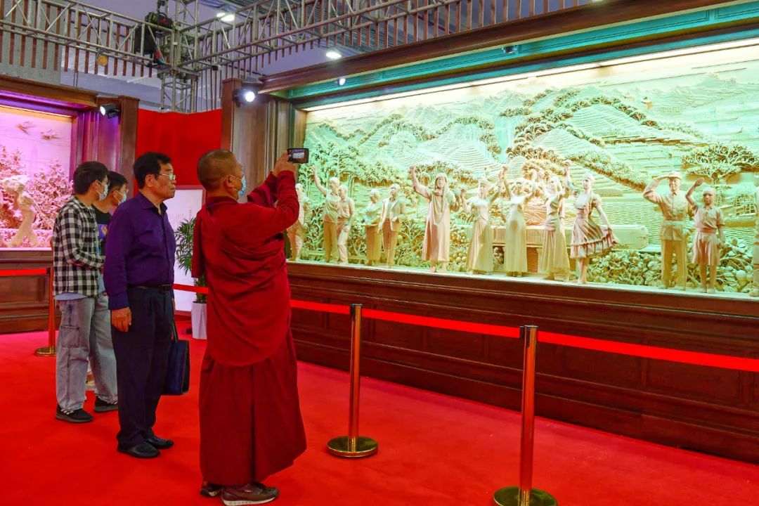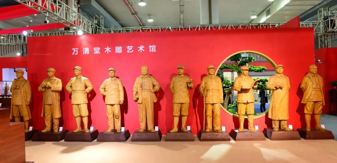 其中,百名大师精品联展区展出100件来自全国各地不同区域、不同民族、不同风格的大师力作精品,如东阳陆光正大师的《百年伟业》、江西俞有桂大师的《丝绸之路》、温州万清堂的《十大元帅》、虞金顺大师的红色系列组雕作品等大型木雕作品一经亮相,便引起了不小的轰动,大家纷纷前来争先领略传承数百年异彩纷呈的中国工艺之美,共飨一场精妙绝伦的工艺美术盛宴。