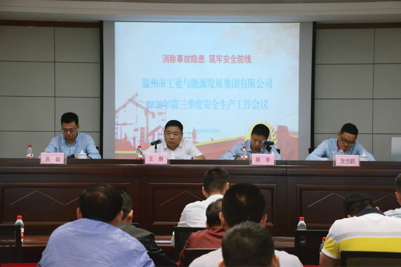 会议传达学习了全省安全生产工作电视电话会议精神,以及《温州市安全生产委员会关于切实做好国庆节期间安全防范工作的通知》《温州市第二轮安全生产综合治理三年行动计划》文件精神,通报了集团第三季度安全生产整体情况,分析了集团当前面临的安全生产形势,部署安排了下一阶段安全生产重点任务。