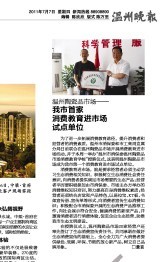 今天出版的《温州日报》第8版、《温州商报》第21版、《温州晚报》第15版同时刊登温州陶瓷品市场消费教育学校成立和消费教育进市场的有关信息,对温州陶瓷品市场成为我市第一个消费教育进市场试点单位进行了全面的宣传和报道。