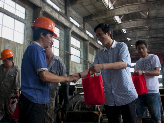 在冶炼公司董事长姚益顺、总经理张旭耀的陪同下,周新波董事长冒着酷暑,深入生产车间,认真检查企业生产安全状况,询问了解企业开展安全生产月活动的情况,并亲切慰问在高温下检修的一线职工,送上慰问品,鼓励职工为完成设备检修最后阶段的工作再接再厉。同时还叮嘱大家要时刻注意生产安全,做好防暑降温。职工们对集团领导在百忙之中能抽空亲临现场送清凉表示由衷的感谢,并纷纷表示决不辜负领导的期望,坚守岗位,全力完成生产和检修任务。