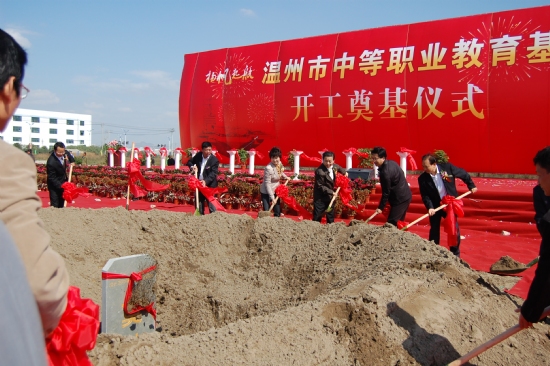 副省长、市委书记陈德荣,市委副书记、代市长陈金彪等领导在仪式上作了重要讲话,要求整个基地要在三年半的时间内建设完成投入使用,争取把基地建设成为全国一流的中等职业教育基地,陈德荣书记为基地建设宣布开工令。