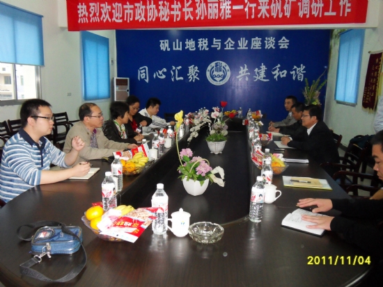 在工作座谈会上,工投集团副总经理朱为然就温州矾矿的历史、现状及初步的旅游规划向各政协领导做了简要的汇报。听取汇报后,各个领导也充分表达了自己的看法,他们一致认为温州矾矿的工业文化遗产具有很高的历史保护价值,矾矿不仅保存了大量的工业历史遗迹,一些古老的生产工艺还沿用至今,是活的工业文化遗址,而且矾山境内还有很多山水人文景观,旅游资源的开发潜力很大,是不可多得的矿山旅游资源。最后,孙副秘书长就下星期阙教授来矾矿拍摄专题片事宜进行了商议,确定了该专题片的主题是围绕“世界矾都有否旅游开发价值”展开讨论。
