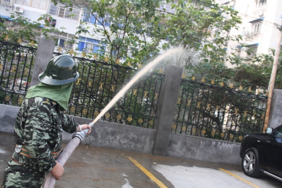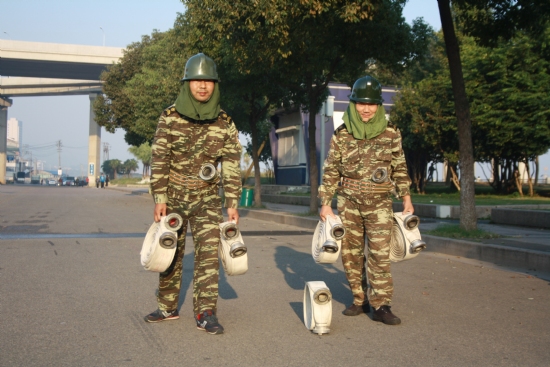 消防栓连接水带并出水练习