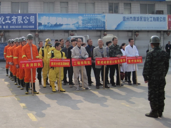 11月24日上午,温州有色冶炼公司所属温州化工市场举行危化品应急救援预案演练,来自安监、公安、工商、运管以及辖区街道等部门的有关领导和兄弟单位的嘉宾莅临观摩。