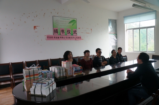 会议室里,学校吕校长首先对大家的到来表示了深深的谢意,并详细介绍了学校各方面的情况。这是一所地处革命老区的九年义务制学校,9个年级9个班级(从小学到初中),共200多名孩子,90%以上都是留守儿童。因为缺少父母的关爱,学校的很多留守儿童会觉得孤独,对生活没有热情,对学习没有信心。吕校长说,这200多本各类课外阅读书籍为学校近期将计划建立阅览室送来了“及时雨”,并表示要让孩子们在快乐中喜欢上阅读,更是要让孩子们感受到社会大家庭的温暖。