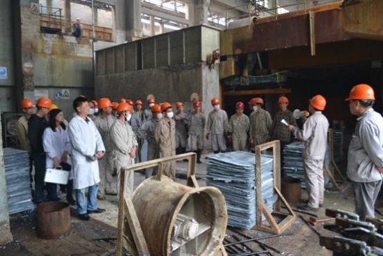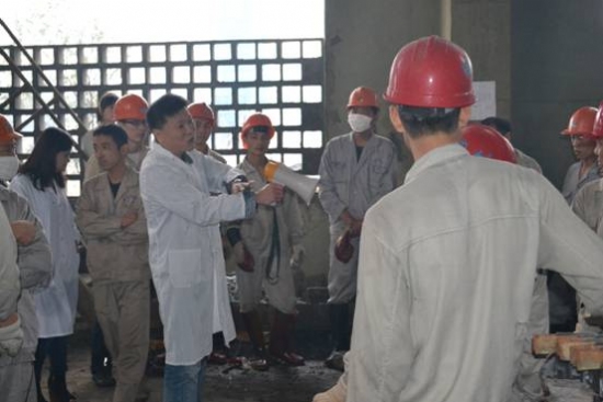 首先进行行车安全性能检测:行车吊着极板以最高速度运行,到达指定位置时,技术组突然切断电源使行车失控,行车安全制动装置自动运行,行车平稳滑行规定安全距离,吊物晃动较小,达到预期性能。接着进行应急人员疏散;技术组人员按预定方案突然切断行车电源,行车失控报警铃响起,剥锌场地的工人听到后马上向预定的线路撤离疏散。最后,还特别邀请公司医务室朱芝明医生进行了现场急救知识讲解,对止血、包扎及伤员搬动注意事项等进行深入浅出的演示!