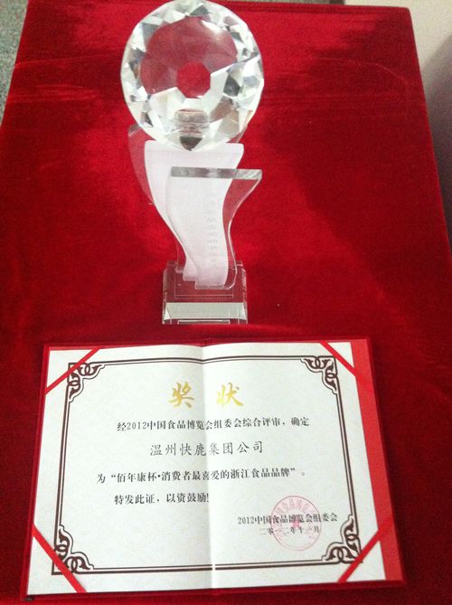本届食博会继续开展“消费者最喜爱的浙江食品品牌”评选活动。根据评选条件及办法,作为温州本地知名食品品牌企业——温州快鹿集团公司,被2012中国食品博览会组委会综合评审为“佰康杯·消费者最喜爱的浙江食品品牌”奖,此次获奖浙江省共34家食品企业,温州地区只有2家,产品涉及酒、速冻食品、调味品、饮料、乳制品、糕点类、肉制品及保健食品等品种。