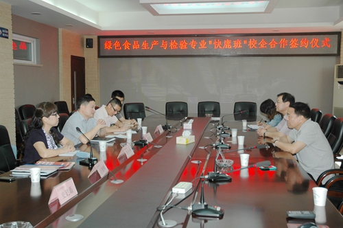 9月27日上午,快鹿集团陈荣江一行来到温州科技职业学院,与该校绿色食品生产与检验专业“快鹿班”进行校企合作签约仪式,并座谈。会上,陈荣江强调要保障实习生在企业实习期间的安全,争取为学生提供更宽广的岗位实习机会,加强对实习生的技能技术培训,为促进学生从学校成功走向社会工作岗位搭建桥梁。温州科技职业学院谢志远副院长也表示此次校企合作对学校办学质量提高、企业储备发展人才、学生得到实践锻炼和能力提高具有重要意义。会后校企双方签订正式协议,并进行了授牌仪式。
