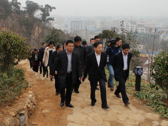 上午10时,省委常委、市委书记陈德荣率督查组检查牛山公园建设情况,工业集团董事长周新波、总经理张志东陪同检查。陈书记一行沿新建的原生态游步道拾级而上,实地查看植树绿化、园路、景观、附属设施建设成果,检查公园拆迁和环境整治,听取项目建设情况介绍,对牛山公园建设表示满意。