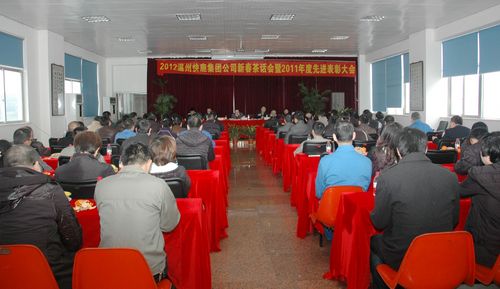 龙岁初临勤努力,辰光正亮著先鞭。1月31日公司九楼会议室春意融融洽,公司全体党员、中层干部、先进工作者近百人在这里召开“2012年新春茶话会暨2011年度先进表彰大会”。都说正月开始正月慢,但新年上班的第二天在庄严国歌声中拉开了会议的序幕,也奏响了快鹿人建设“幸福快鹿”再创辉煌的乐章。