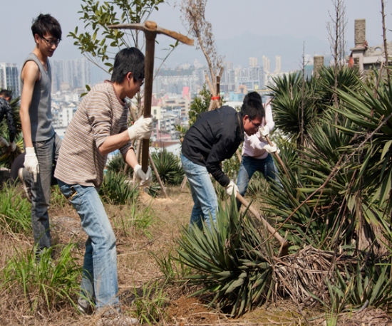 3月28号春光明媚,晴空万里。冶炼公司团委为响应集团公司周新波董事长对于温创园办[2012]8号(《关于开展“十万棵树木认种”活动的通知》)文件的批示精神。于牛山北坡上展开了 “移植野生剑麻,绿化冶炼园区"的活动。
