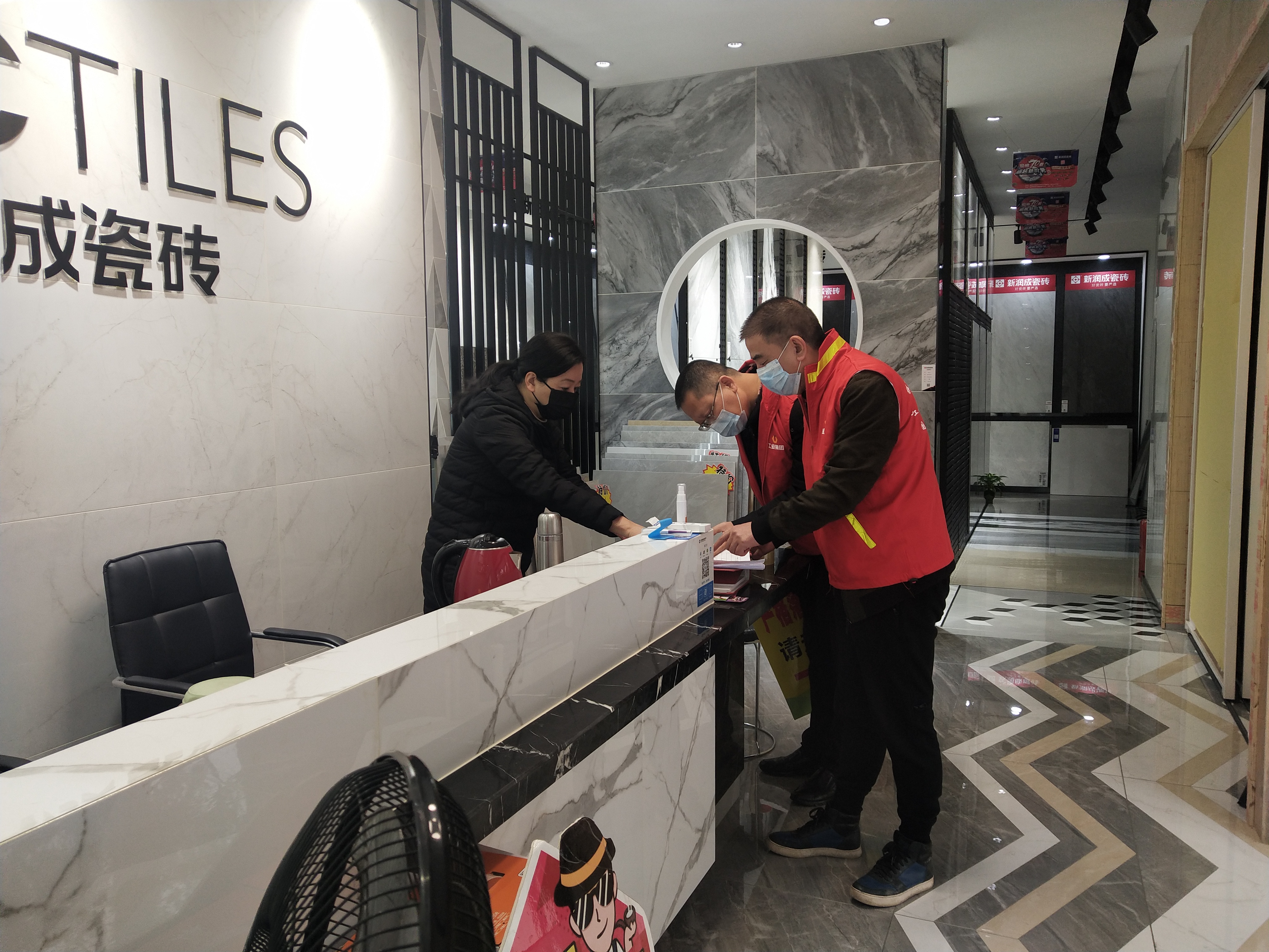 一是实时掌控各经营户流动情况,为他们解读相关政策,提供防疫咨询服务,帮助购买口罩、体温枪、消毒水、酒精等防疫用品,确保经营户防疫工作顺利开展,为复工复产打下坚实基础。二是以程序简、把关严为原则,严把开工审核关,帮助签订疫情防控承诺书,严控人员流动,确保经营户安全顺利开工。三是党员志愿者每天对经营场所消毒情况、经营人员体温情况等进行三次全面检查,并收集反馈意见,提升服务质量。(家居公司)