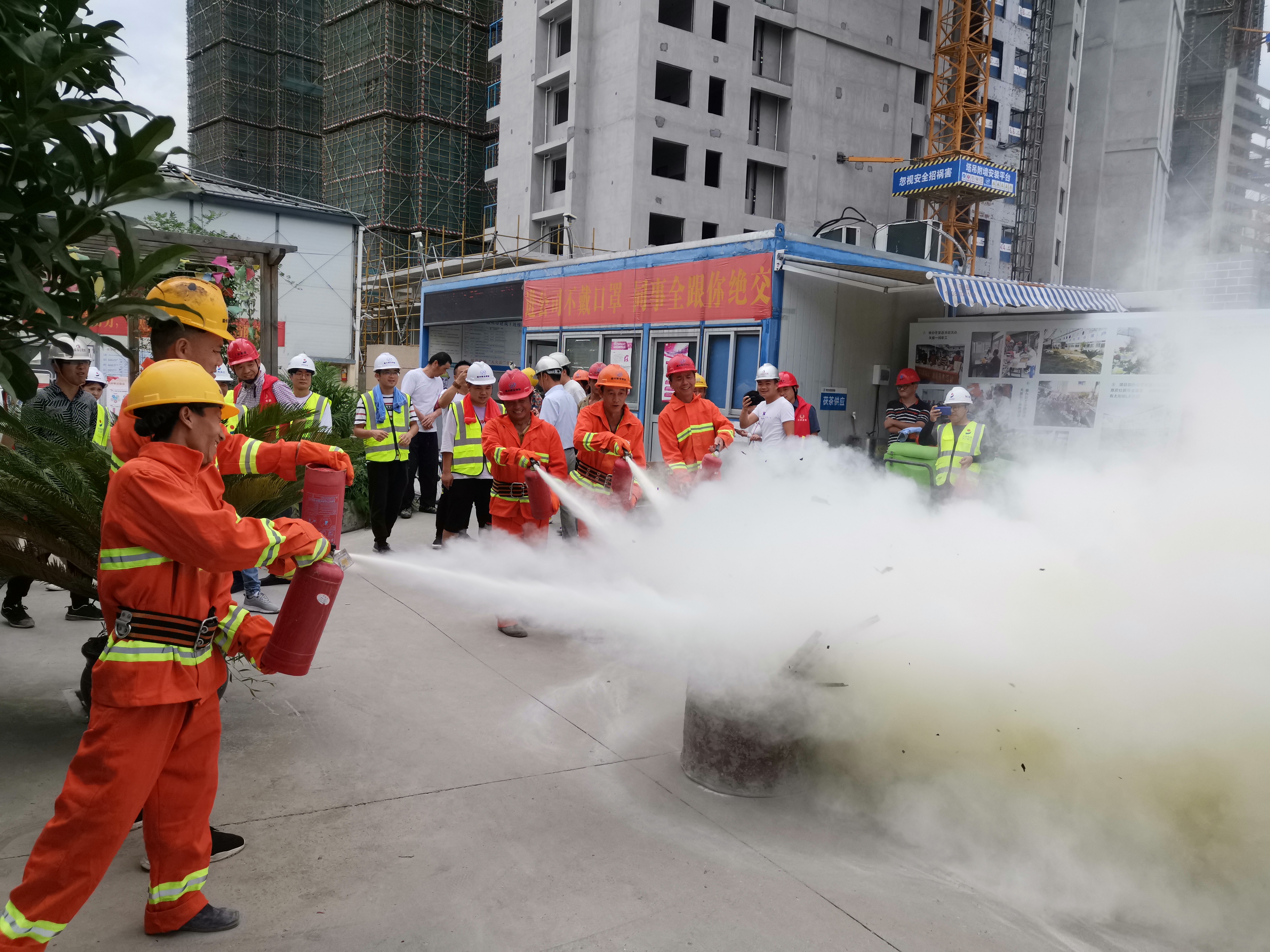 6月29日下午,浙瓯房开联合温州建设集团、浙江省建工集团在温化A区工地举行消防疏散演练以及消防器材使用培训等活动。