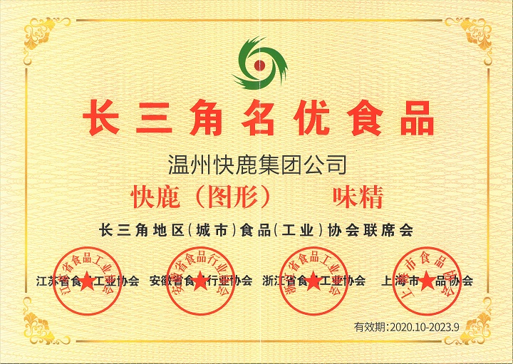11月26日,2020年长三角名优食品品牌建设交流大会在上海召开,快鹿集团“快鹿”味精荣获“长三角名优食品”称号。