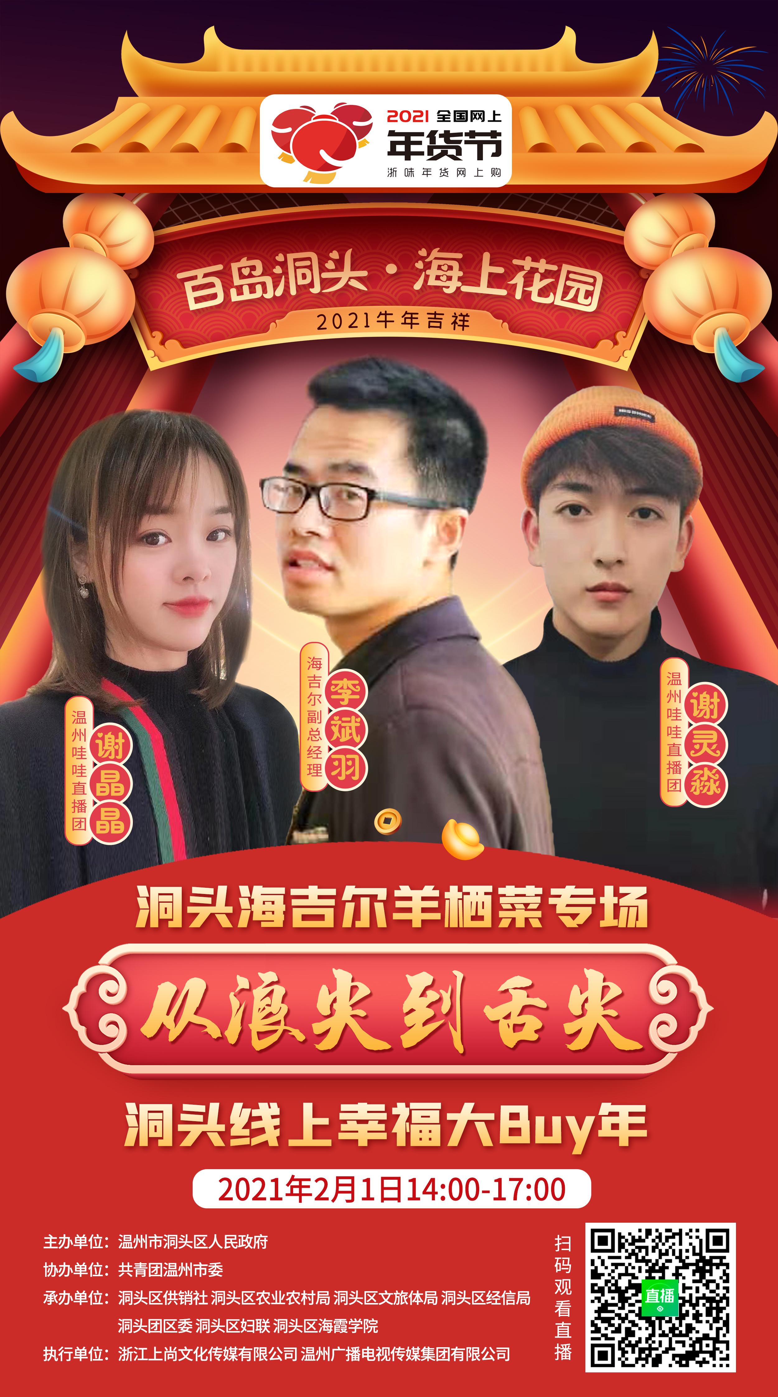 1月29日至2月1日,金海蕴公司作为洞头知名“两菜一鱼”企业,受邀参加2021“从浪尖到舌尖”线上幸福大BUY年暨洞头真鲜IP启动仪式。公司拳头产品“海吉尔东海长寿菜”亮相直播间,深受广大消费者青睐,完成117笔订单。