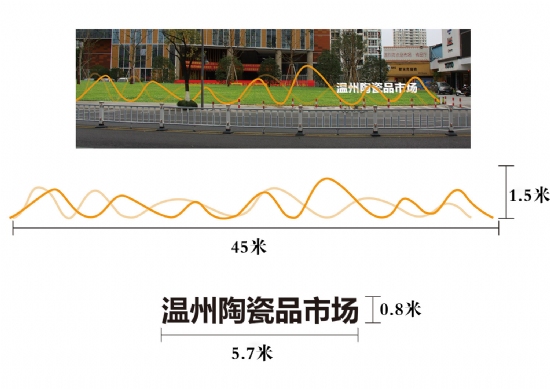 四、 招标内容:温州陶瓷品市场一期新大楼花坛景观造型设计、制作及安装。飘带形状景观造型,长度约45米,高度约1.5米,预算费用为8万元。材质要求及参考造型示意图附后。