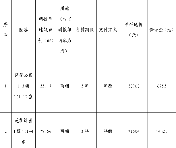 温州市工业与能源发展集团有限公司位于市区市区莲花公寓1-3幢101-12室、莲花锦园1幢101-4室,经年租赁权价值评估和相关程序审批,现将招租情况公告如下: