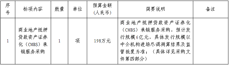 二、项目名称:商业地产抵押贷款资产证券化(CMBS)承销服务采购