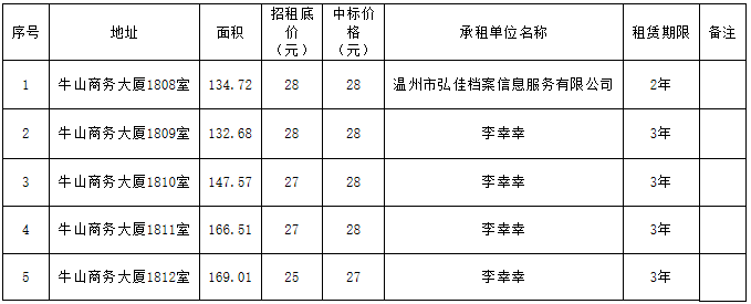 现根据《温州有色冶炼有限责任公司国有房产土地租赁管理办法》温冶〔2022〕67号的规定,将以上租赁结果予以公示,本公示时间为5个工作日,自公示之日起有关单位和个人对公示事项如有异议,请与温州有色冶炼有限责任公司纪检室反映,联系电话:85551836,联系人:叶先生。