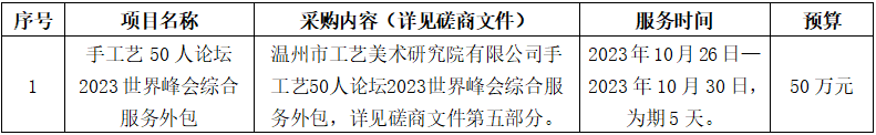 温州市工业与能源集团所属温州市工艺美术研究院有限公司关于手工艺50人论坛2023世界峰会综合服务外包项目(其他类)的征求意见公示