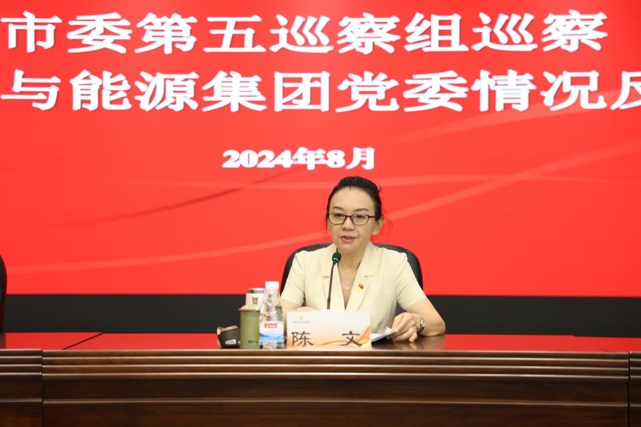 2024年8月8日,市委第五巡察组向市工业与能源集团党委反馈巡察情况。市委第五巡察组组长陈文代表巡察组分别向朱祖荣和市工业与能源集团党委领导班子反馈了巡察情况。市委巡察办副主任陈雷传达了市委书记专题会议精神,对抓好巡察整改工作提出明确要求。朱祖荣主持领导班子反馈会议并做表态发言。
