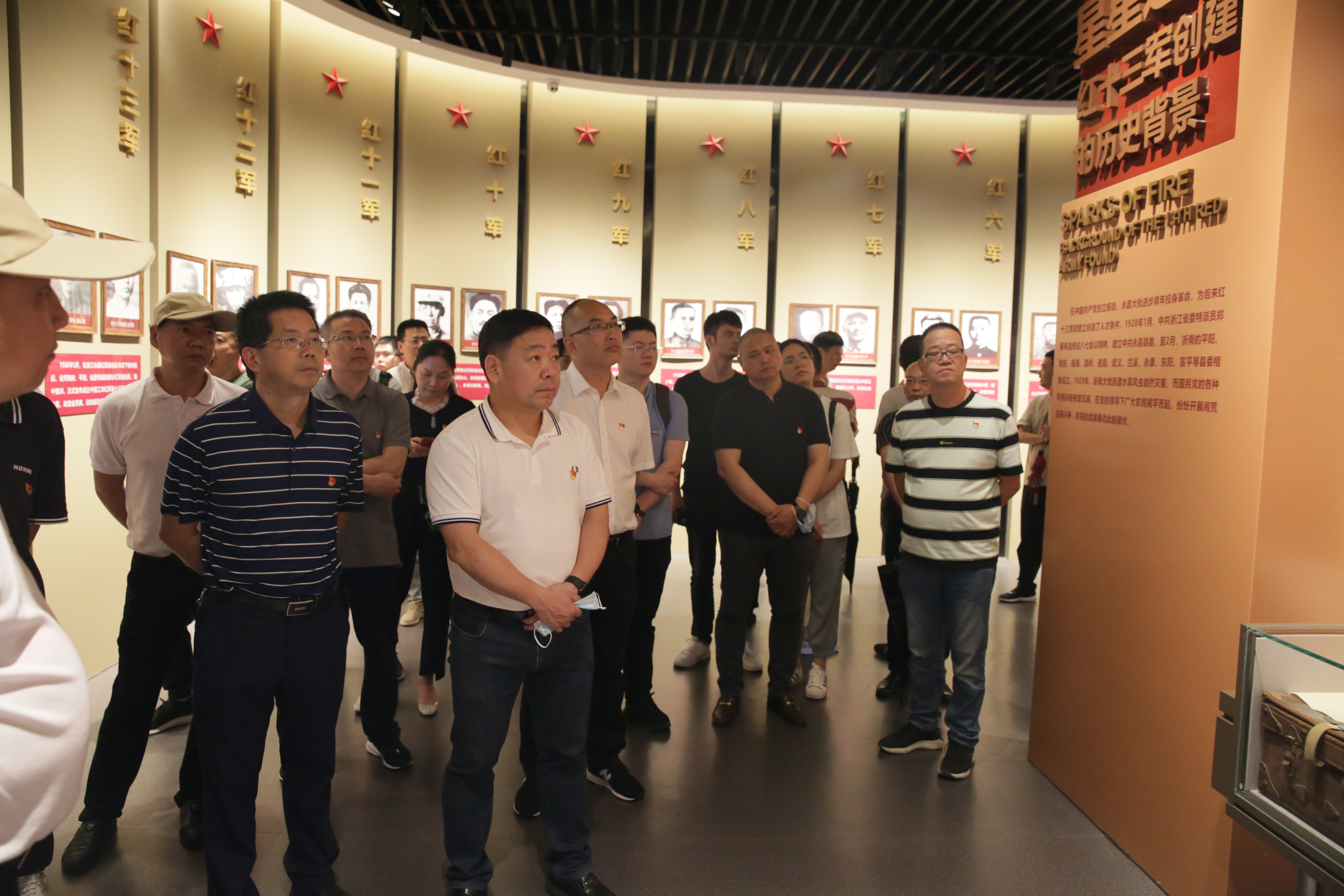 集团党员在党旗下重温了入党誓词,还参观了中国工农红军十三军军部旧址纪念馆。看着一幅幅珍贵的历史照片,听着一个个感人的革命故事,全体党员深入了解了红十三军的组建背景、建立过程、战斗历程、反围剿斗争和策略转移等历史事件,领略了革命先辈铮铮铁骨、宁死不屈的英雄气概,并在红十三军革命纪念碑前缅怀先烈和敬献花篮。